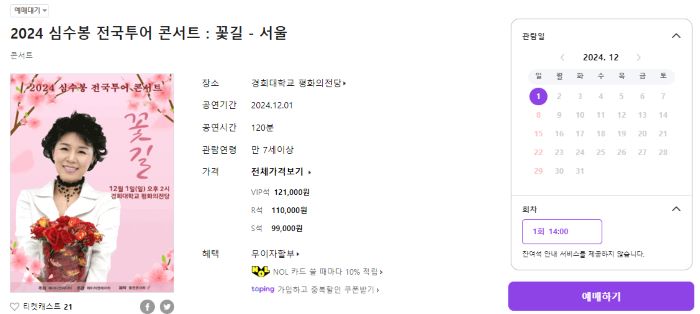 심수봉 콘서트 가격, 할인정보